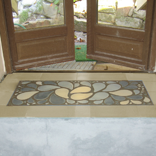 Auch als Bodenfliesen geeignet - sowohl außen als auch innen, da die Fliesen frostfest sind.